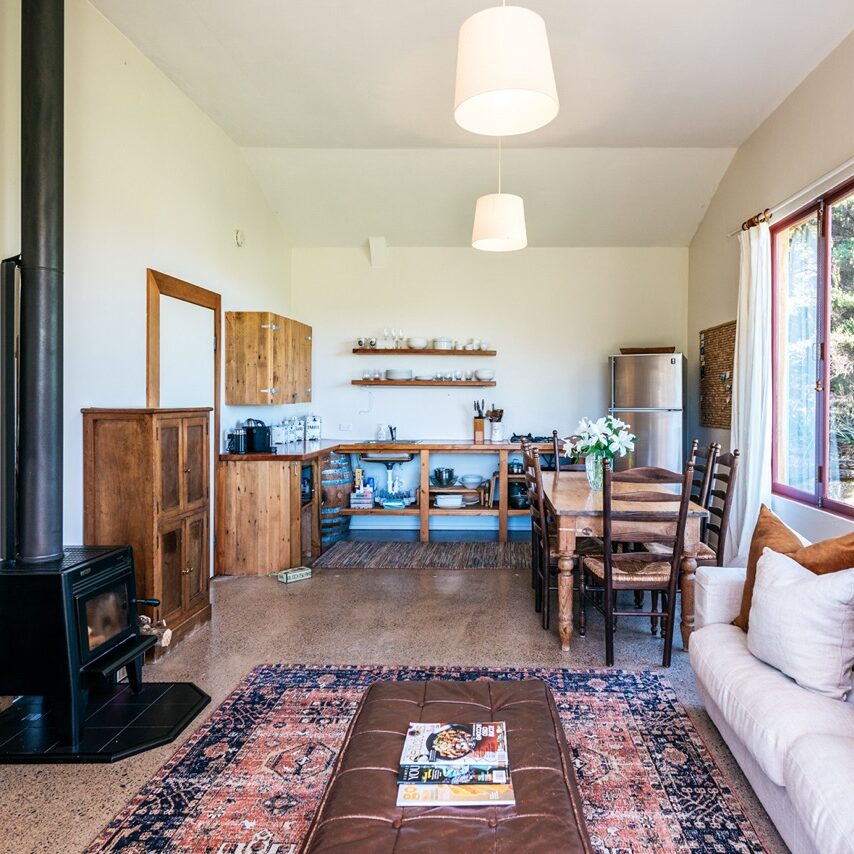 Escape to The Vineyard Cottage, a Mediterranean-inspired retreat for two at Cypress Ridge Estate. Tucked along the vines, this rustic-chic hideaway offers sweeping valley views over neighbouring vineyards.